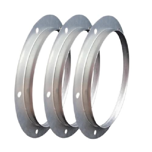 2:风管法兰通常呈扁平的环状结构,一般由扁钢、角钢或槽钢等金属材料通过切割、焊接、弯折等工艺制成。其周边会预留有若干均匀分布的螺栓孔,用于安装螺栓,从而实现与其他风管段或相关设备的连接固定。